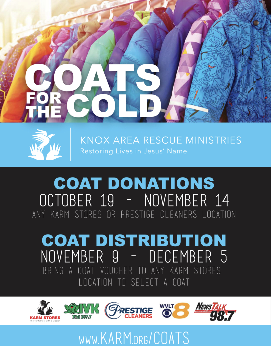 Along with Prestige Cleaners and KARM, we, KCSO, intending on making this winter a little less harsh on the less than fortunate. We will be collecting coats for the cold at three different precincts: — North Knoxville (located within the Rural King shopping center @ Norris Freeway), — East Knox (Home Depot shopping center off of Washington Pike), — West Knoxville (Buffalo Wild Wings shopping center, off of Parkside drive)