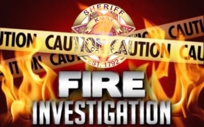 Flames, with KCSO Badge, caution tape, and "Fire Investigation"