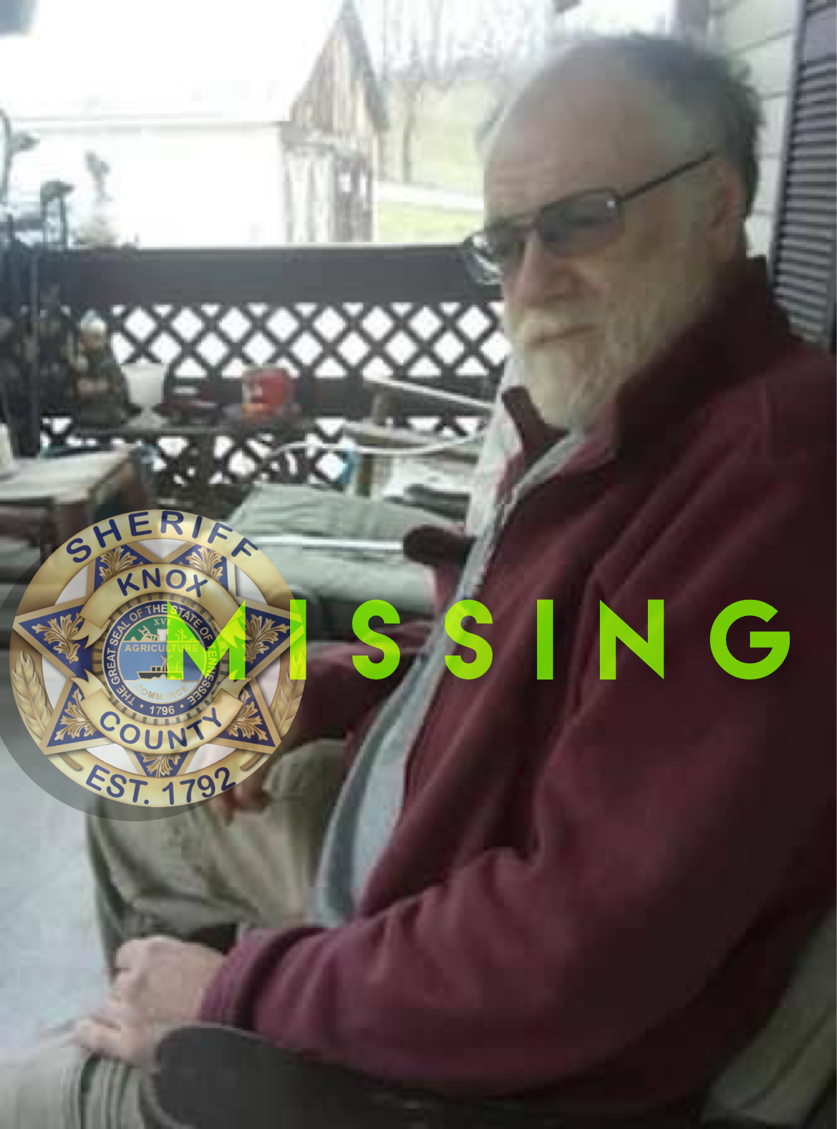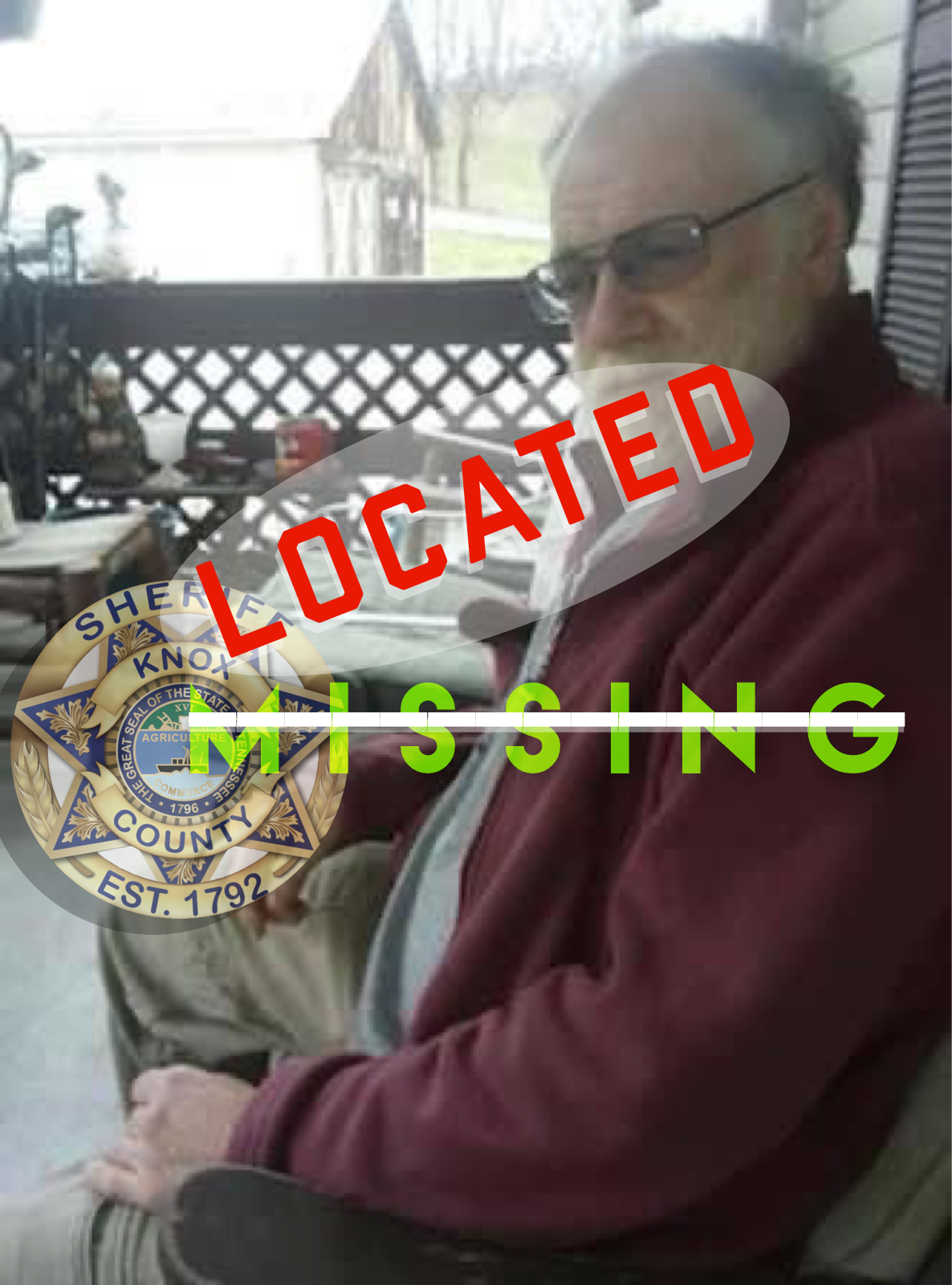 UPDATE: 8:15pm Mr. Fox has been located and is safe. Sheriff Spangler appreciates the public’s assistance in helping to locate him and get him home safely.